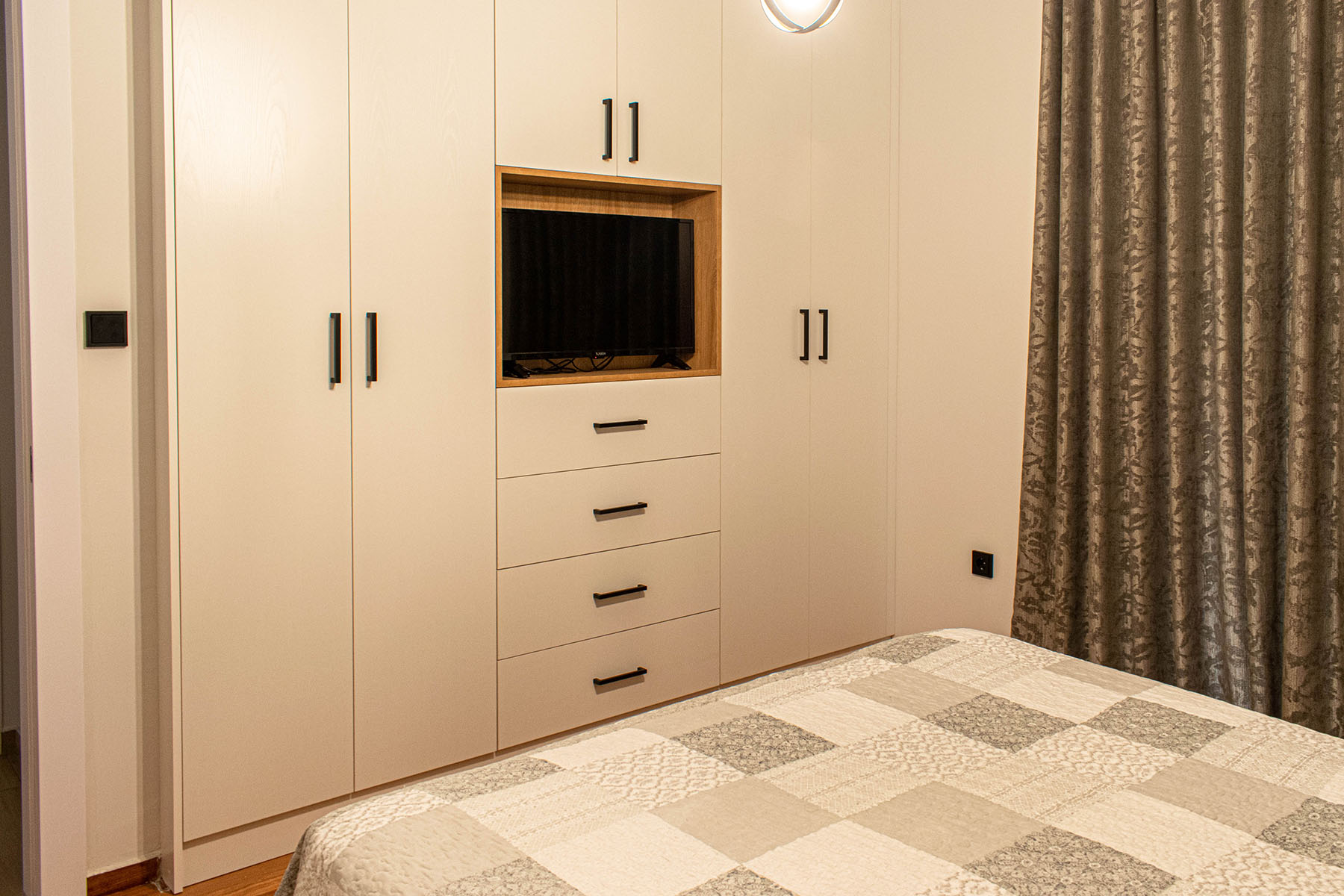 Ντουλάπες ανοιγόμενες από laminate. Οι εσωτερικές πόρτες είναι optima plus της Alfa Wood.